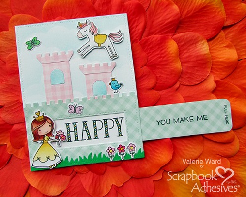 To finish off, adhere the card panel to a blue card base with the E-Z Runner® Grand Refillable Dispenser. Stamp and color the monster images, then die cut. Adhere the monsters to the card front using 3D Foam Squares.